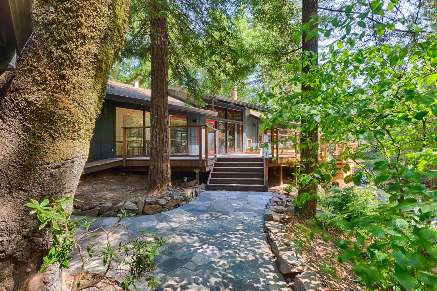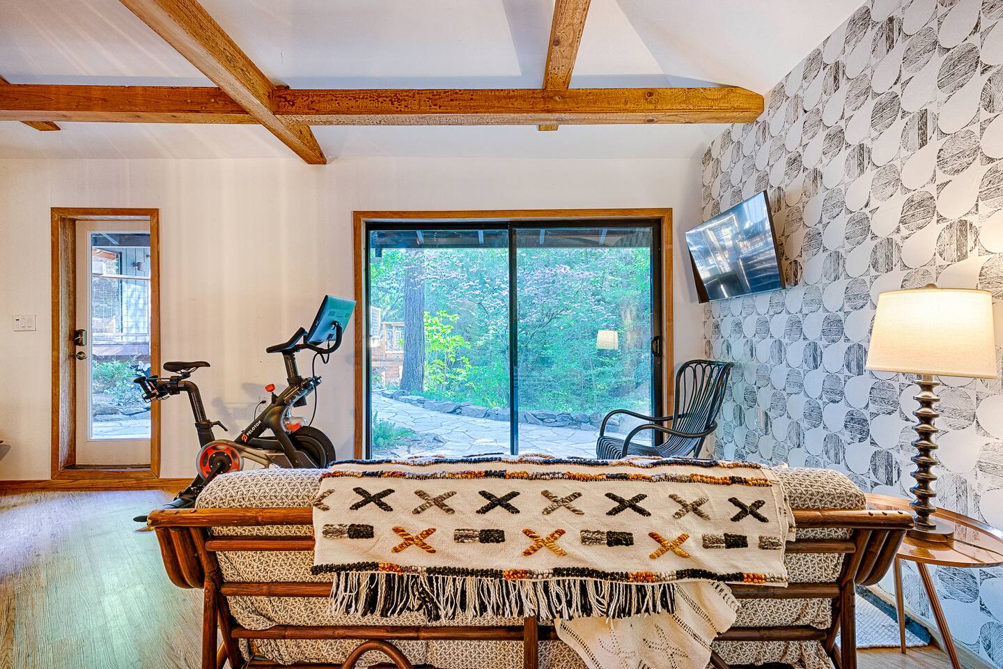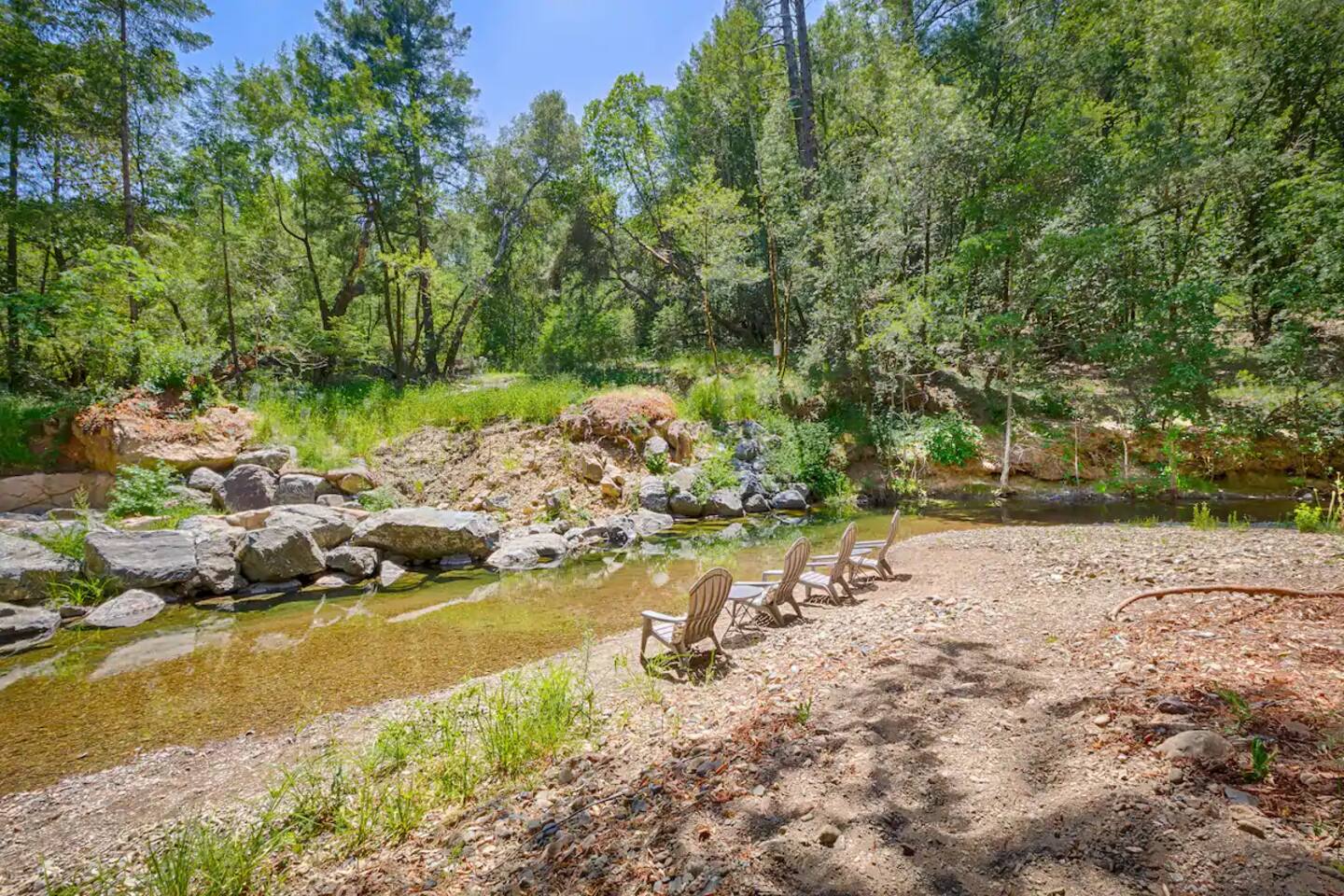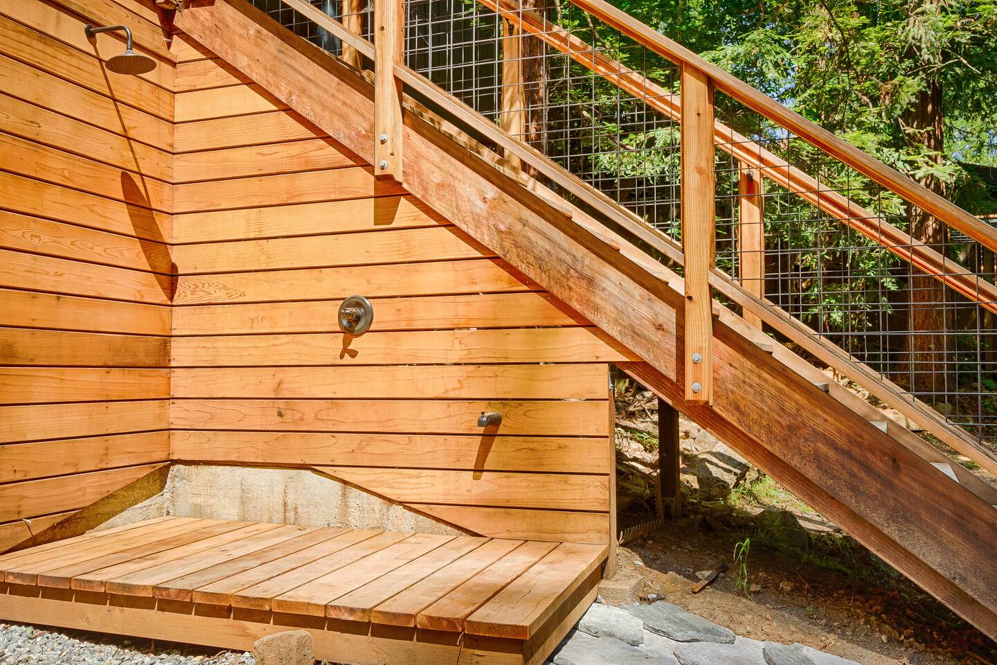 This cabin in the redwood grove sits right along Mill Creek, which feeds the Russian River and runs year round. Between May and September the creek is wonderful way to stay cool, and there is a swimming hole on the creek steps from the house. We love the contrasting colors of the sky and the green of the redwoods - during the day the sky is the bluest of blue, and at night the stars are right at your fingertips with no light pollution at all. We designed the day bed on the deck because we spent the summer we were renovating the house sleeping outside under the stars on a futon - you can do the same on the daybed if you choose. We love the Healdsburg area with access to world-class cycling, wine-tasting, culinary delights and more. Inside the house in the redwood paneled living room you can settle in with a glass of wine and listen to records on the vintage Marantz stereo and record player (careful please). 1000s of records means there will be somethng you love to listen to! We feel so unplugged when we visit this part of the world, and though wifi is available, the best screen time is outside staring at the redwoods and watching the birds and ducks in the creek. But if you need some wifi, ours is super fast - we just installed dedicated fiber. Main House: - 1 master bedroom w. king bed and ensuite full bathroom - 1 kids room with crib & daybed and ensuite full bathroom Bure (Detached Guest House): - Studio suite with queen bed and ensuite bathroom & outdoor shower We also offer a Peloton, Weights, and a Pilates Reformer. We hope you'll enjoy our home as much as we do.
