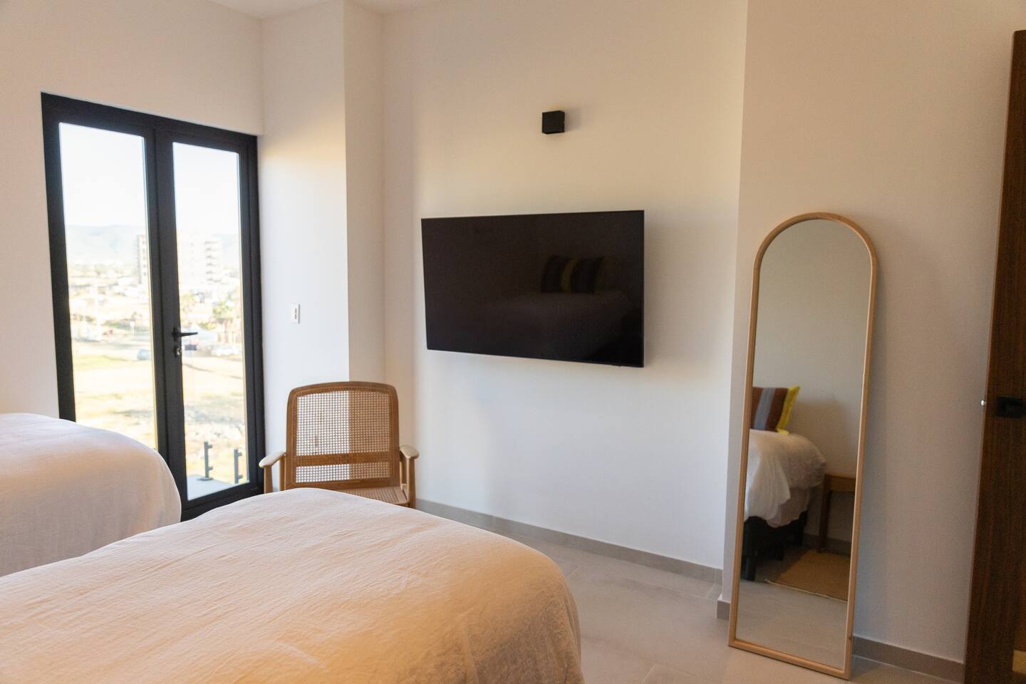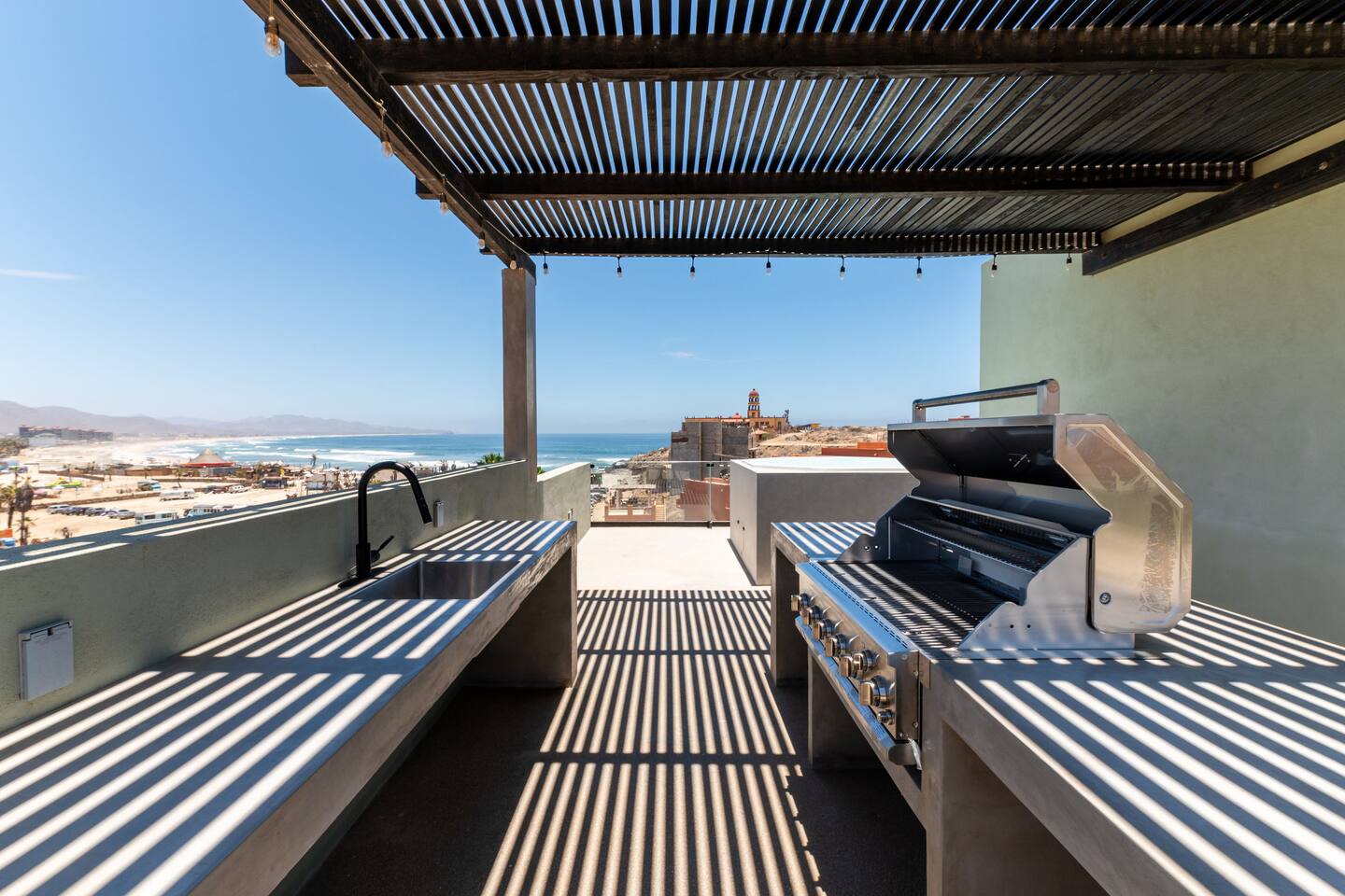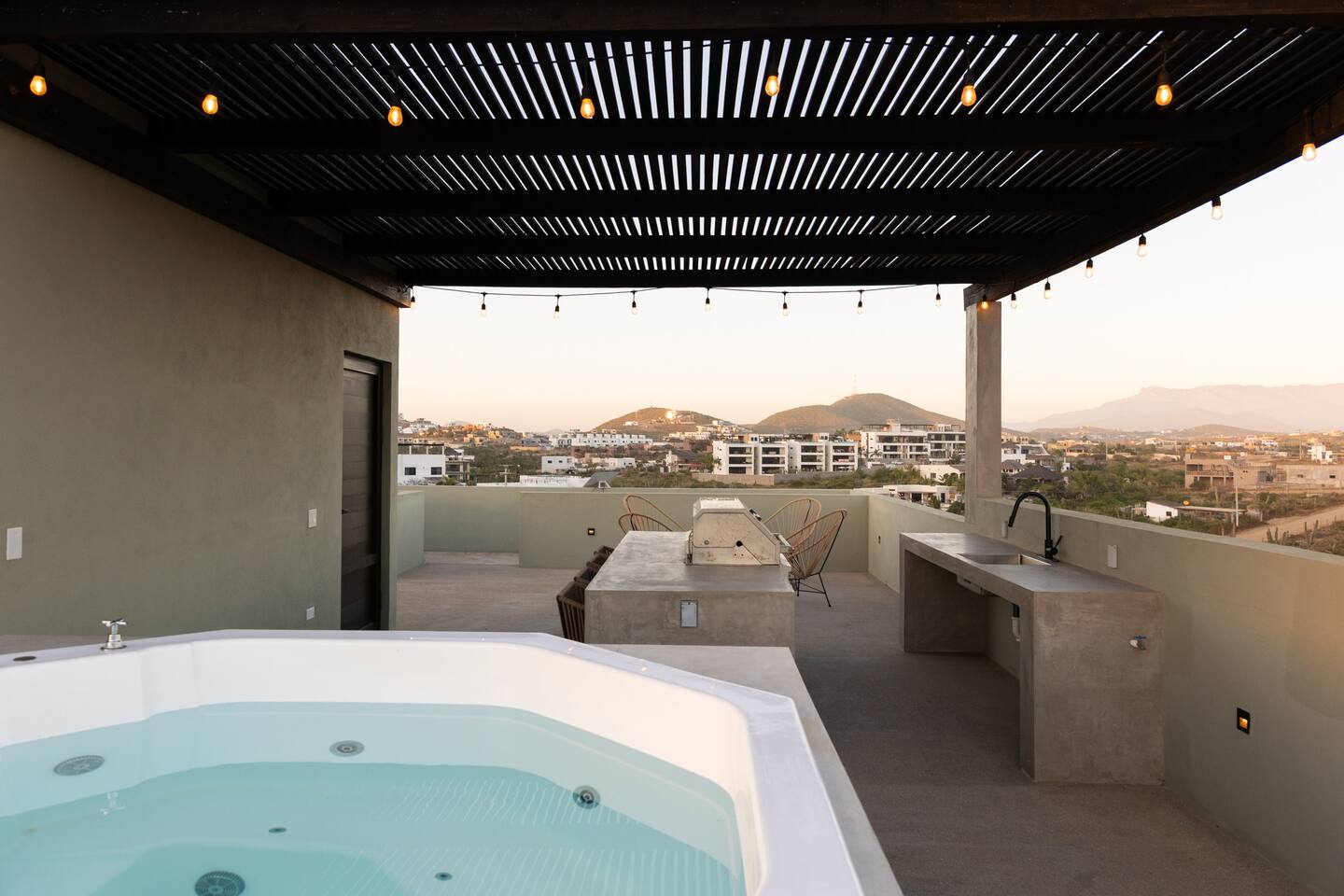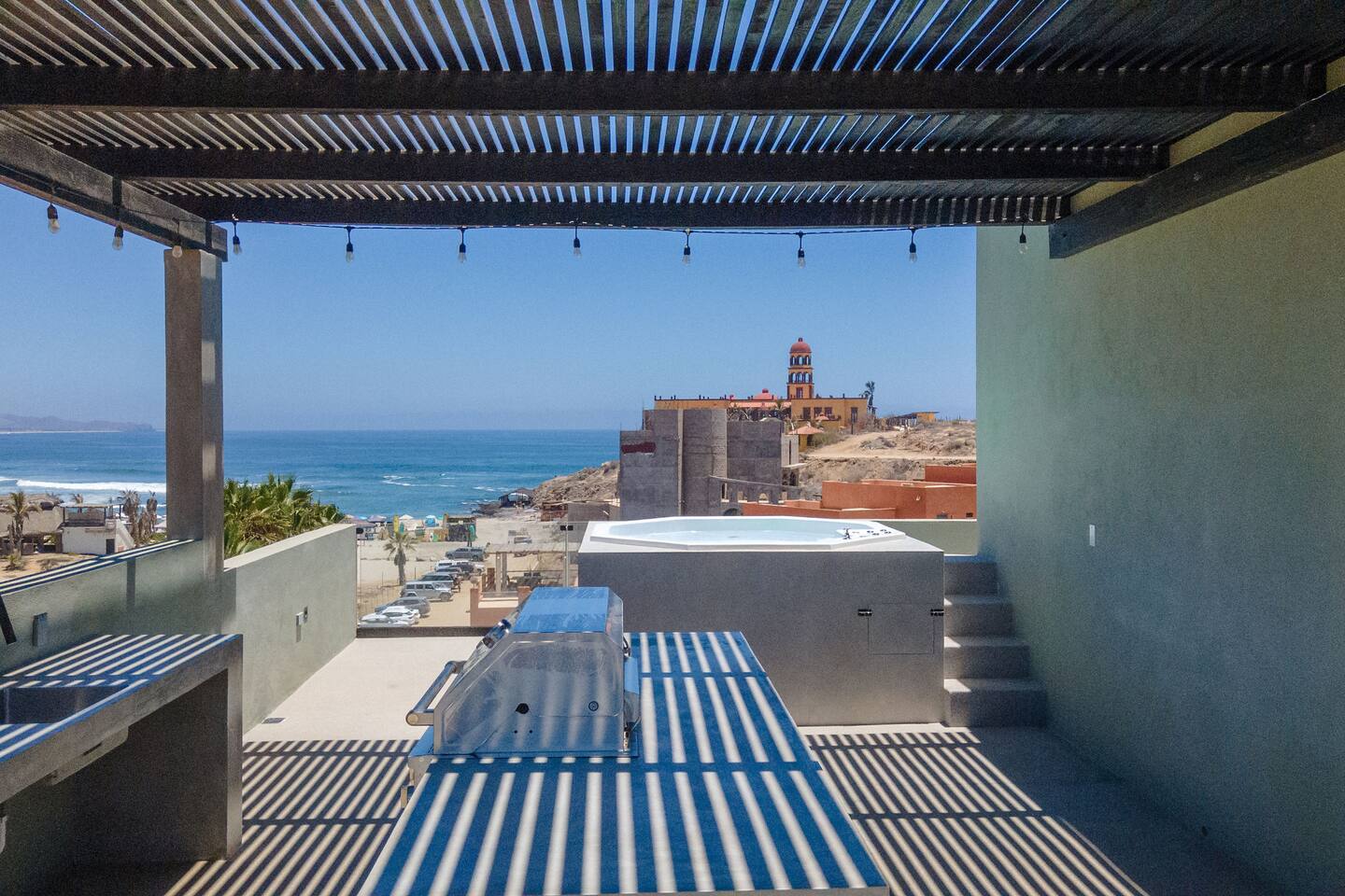 The Space Pico del Punto is a brand-new penthouse condo designed for guests who want an elevated surf experience with comfort, privacy, and ease. 🌊 Penthouse Location Set at the top of the complex, the unit offers full ocean views, added privacy, and a quieter atmosphere than lower-level condos. Natural light, warm finishes, and an open layout create a calm, welcoming space. 🛏 Comfortable, Thoughtful Layout Ideal for two couples or a family, the penthouse includes two bedrooms, modern bathrooms, and open living and dining areas perfect for relaxing after beach days. ☕ Two Private Patios Enjoy morning coffee, midday shade, or quiet downtime on two separate private patios. 🌅 Private Rooftop — Exclusively Yours The rooftop is private to the penthouse only and not shared with other units. Upstairs you’ll find panoramic ocean views, a rooftop soaking tub, grill, chaise lounges, and space to unwind. Sunset drinks, stargazing, and quiet evenings are part of the rhythm here. 🏄 Steps to Cerritos Beach Walk to the sand in under a minute. Cerritos Beach is one of Baja’s most iconic surf breaks, suitable for beginner through expert surfers depending on conditions. We’re happy to recommend surf lessons and board rentals, and we provide beach chairs, boogie boards, and a soft-top surfboard. ✨ Everything here is designed to feel easy — from beach access to quiet nights back home.