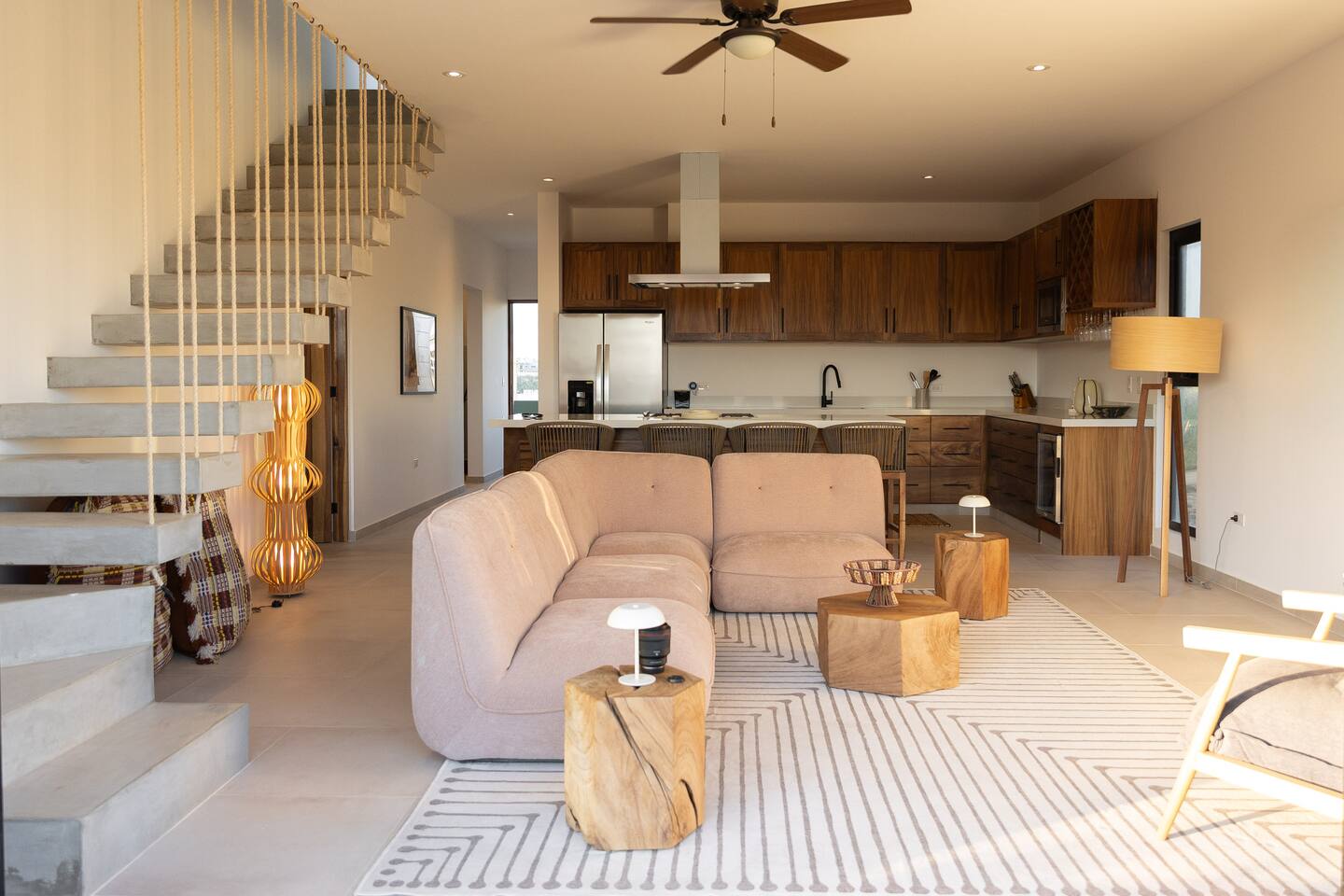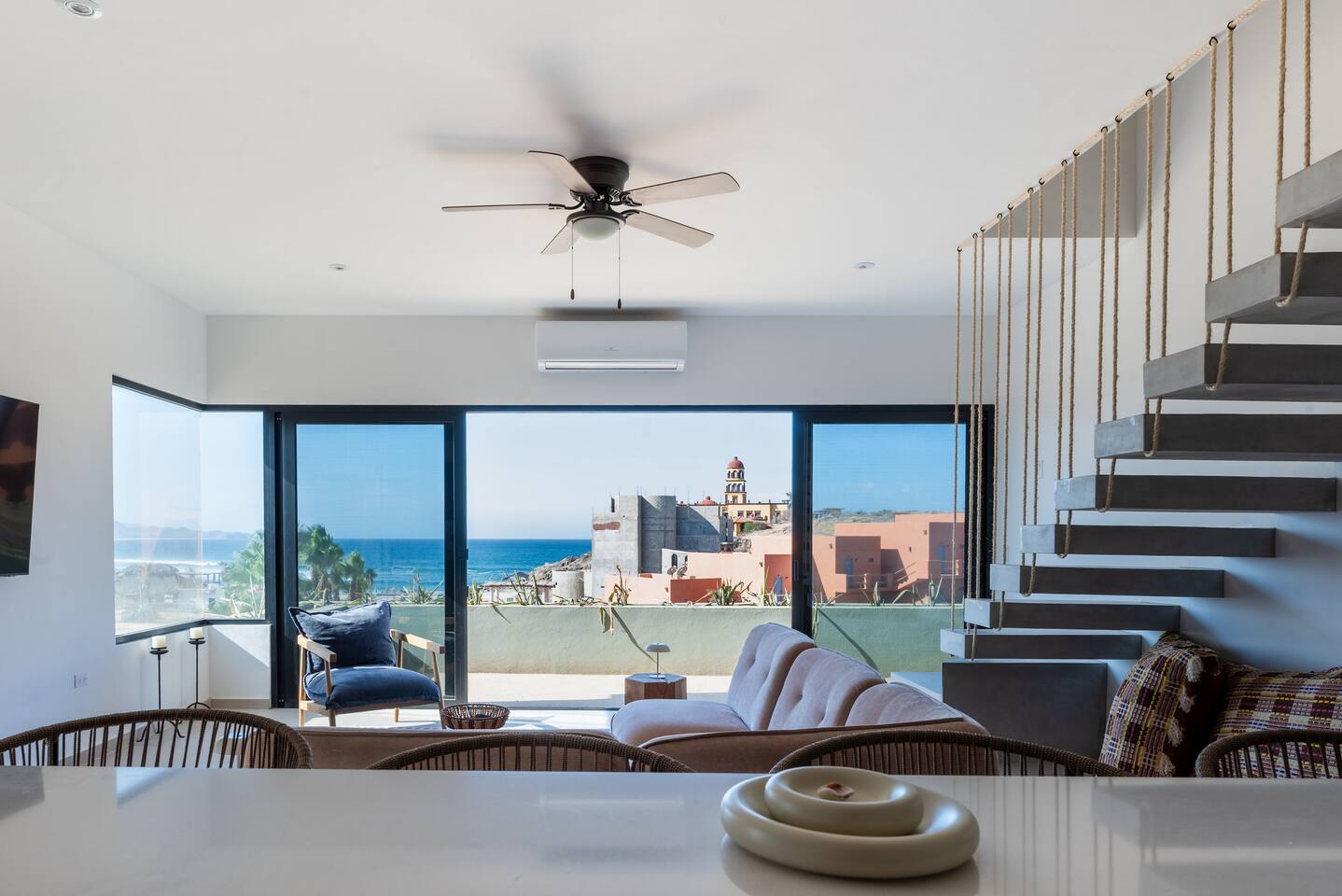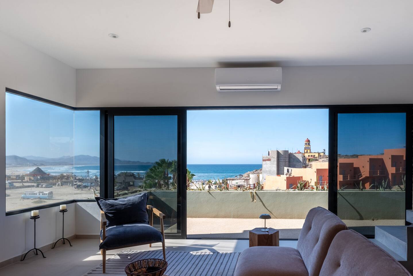 Welcome to Pico del Punto, a brand-new penthouse at Cerritos Beach designed for an easy, elevated surf escape. Just steps from the sand, the penthouse offers full ocean views, unbeatable surf access, and total privacy. Start your day with coffee and a surf check from the balcony, then walk to Cerritos’ iconic beginner-friendly break in under a minute. After the beach, unwind on one of two private patios or head up to your private rooftop for sunset drinks and quiet evenings under the stars.